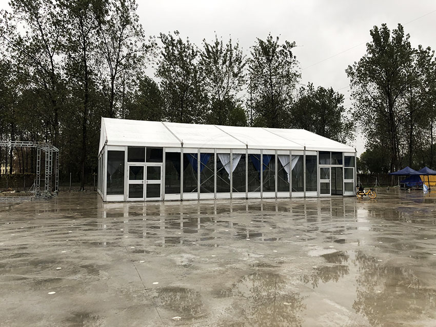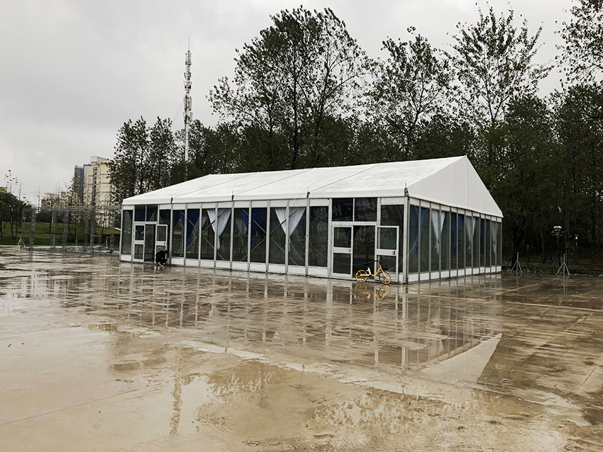 給青山區開工儀式形成了一道美麗的風景,測試架玻璃篷房不僅可以保護您的篷房