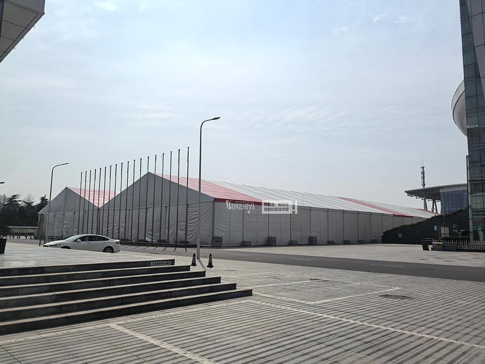 鄭州活動篷房出租公司搭建一座品牌展銷會篷房。展銷會活動通常持續時間不長,在市中心或者繁華地區舉辦的較多,這種時候搭建一座臨時篷房是再合適不過的了。就像鄭州華熠公司來到南陽搭建的這座展銷會篷房一樣,寬敞明亮,一共達6000多平。