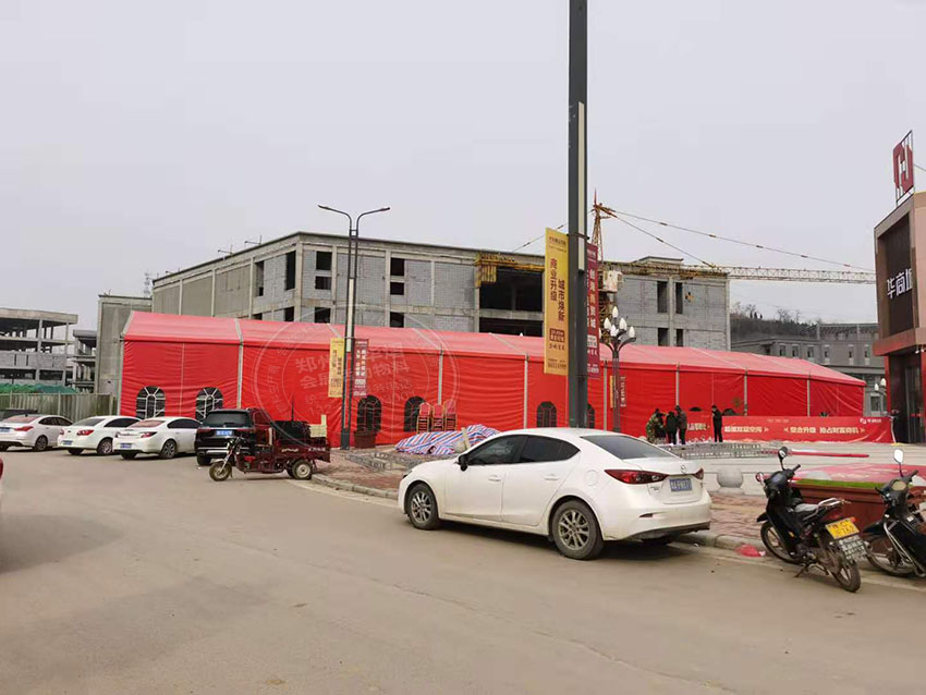 洛陽嵩縣華南城活動現場華熠為其提供紅色篷房租賃,華熠家的每位員工恪守本職,