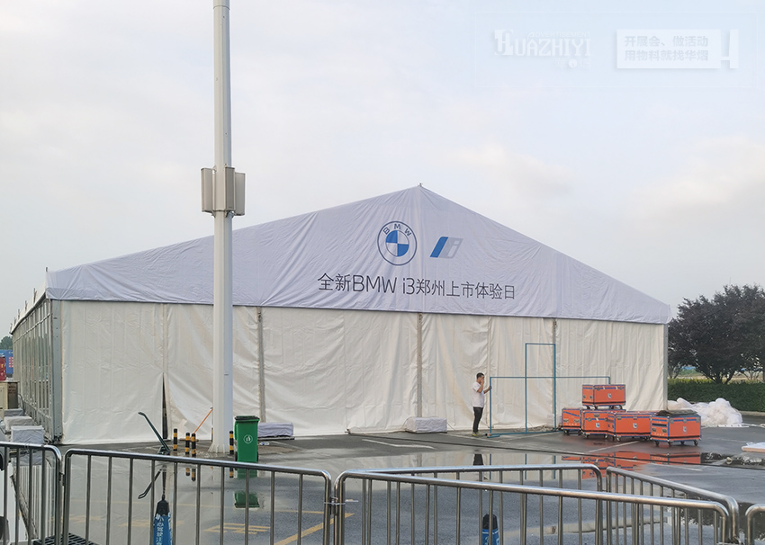 鄭州篷房租賃公司助力寶馬i3上市體驗(yàn)會,本次我們來到了寶馬體驗(yàn)會的活動現(xiàn)場,活動現(xiàn)場是由搭建的白色篷房是主會場,篷房內(nèi)部的頂部是由白色紗幔來進(jìn)行裝飾的。