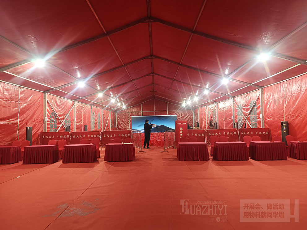鄭州篷房出租冬季搭建篷房篷布質量怎么評估?在選購篷房時要進行多方面考量,不僅要看框架結構也要看篷布質量,千萬不可只過于關注框架材質,其實篷布的質量更關系到整體的使用感。請看華之熠篷房公司搭建的地產篷房,助力地產公司交房儀式現場。此次使用的是紅色篷布的篷房,喜慶大氣,在寒冷的冬季也營造出一種熱烈的氣氛,那么今天鄭州華之熠公司給各位做個介紹。