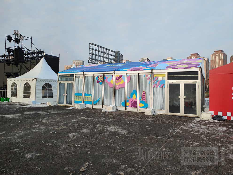 像此次的燈會慶典活動,為了適合活動需求,就在篷房外部做了裝飾畫面,創造出了獨特的視覺效果,讓玻璃篷房與現場合二為一,沒有一絲突兀。結構上更是簡單堅固,搭建過程快速而高效,大大幫我們節省籌備時間和成本。