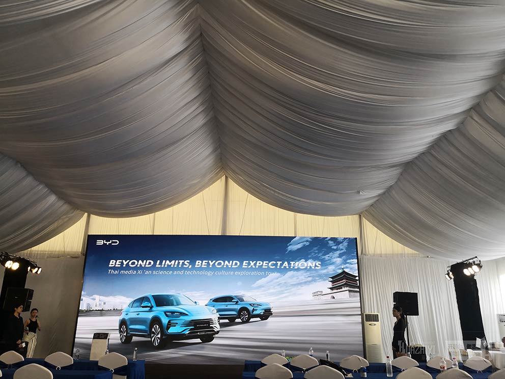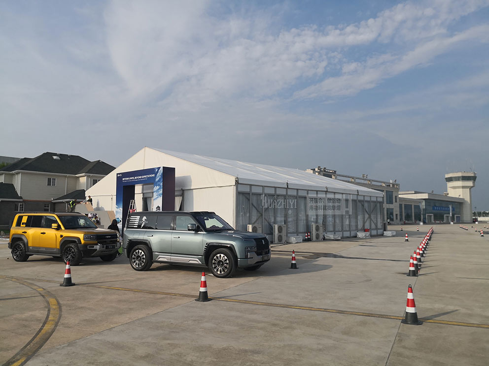 在搭建過程中,鄭州篷房租賃廠家的專業(yè)團(tuán)隊(duì)展現(xiàn)出了高度的專業(yè)性和協(xié)作精神。他們嚴(yán)格按照設(shè)計(jì)方案進(jìn)行施工,確保每一個(gè)細(xì)節(jié)都符合標(biāo)準(zhǔn),同時(shí)還與比亞迪方面緊密溝通,及時(shí)解決各種問題和需求,確保了車展的順利進(jìn)行。