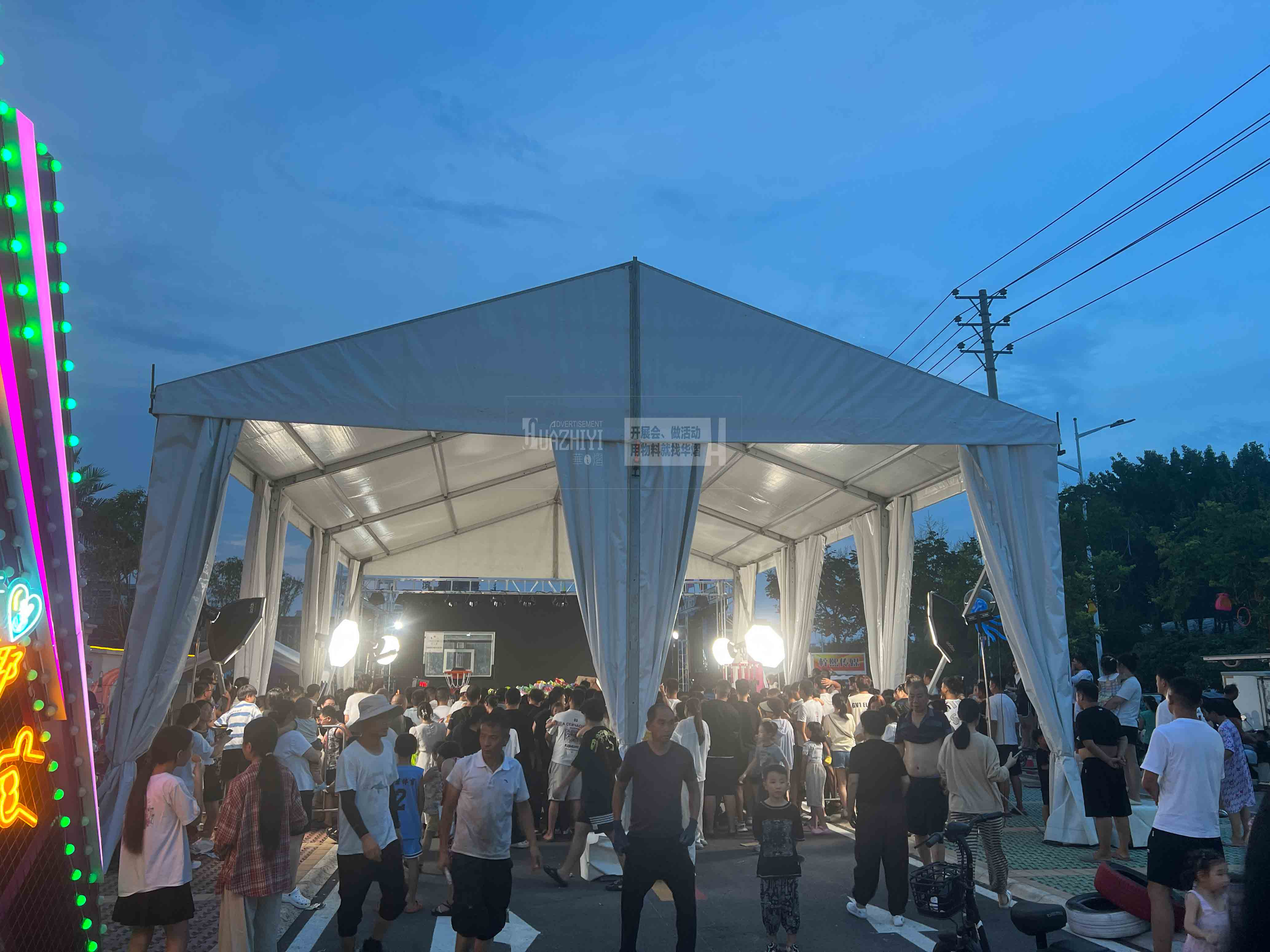 此外,鄭州華熠婚慶篷房租賃公司還提供專業(yè)的燈光架租賃服務,我們能夠根據(jù)新人的需求和喜好,進行個性化的燈光設計。無論是浪漫的燭光晚餐,還是激情四溢的派對舞會,都能通過燈光的巧妙運用,營造出更為適宜的氛圍。