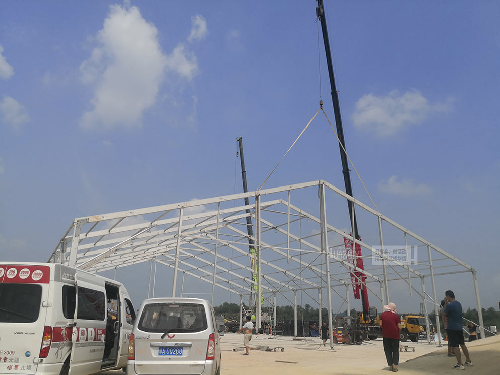 華熠廠家憑借精湛的工藝和豐富的經驗,確保了每一座白色大篷房的穩固與安全,同時,在細節處理上也下足了功夫,從篷布的材質選擇到框架的穩固搭建,無一不體現出對品質的極致追求。