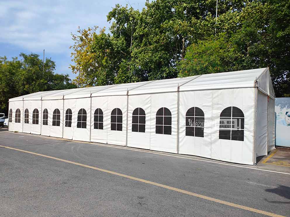 華熠篷房租賃公司憑借豐富的搭建經驗和專業的施工團隊,在短時間內完成了這座臨時展廳篷房的搭建工作。我們不僅注重篷房的穩固性和安全性,更在細節處理上精益求精,確保每一個細節都能達到更佳效果。