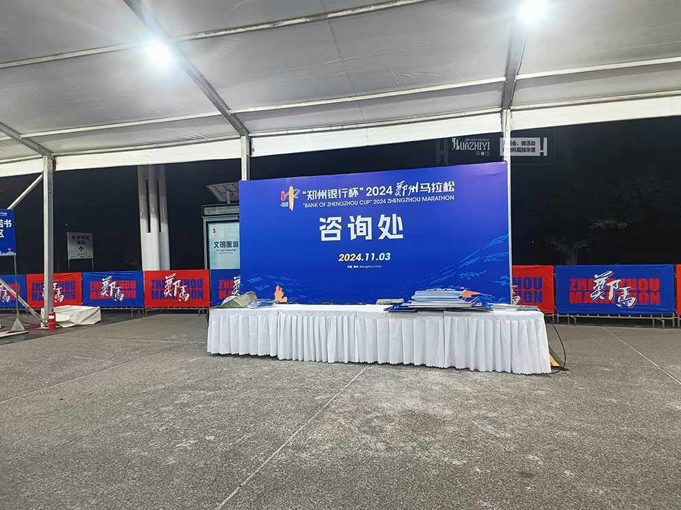 鄭州篷房租賃搭建2024鄭州馬拉松現(xiàn)場物資領(lǐng)取篷房。鄭州馬拉松已經(jīng)順利收官,我們再來回顧一下現(xiàn)場吧。此次活動鄭州華熠提供了不少種類的物料,其中較大的有一座玻璃篷房、一座領(lǐng)取物資的大型篷房等。這座大型領(lǐng)取物資篷房為了確保參賽選手和觀眾能夠順利領(lǐng)取物資,空間大,指示牌醒目。