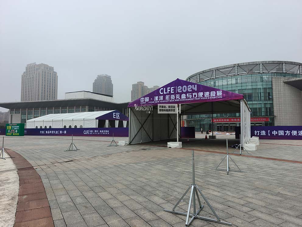 鄭州活動篷房租賃助力漯河大型交流展銷會現場。在漯河正在舉行一場盛大的展銷會,此次的主題是年貨包裝禮盒和方便速食相關,吸引了眾多的供應商和行業人員,在這里聚集,在這里交流。鄭州活動篷房租賃廠家也來到這里,搭建了一座座展銷會篷房,作為明亮寬敞的臨時展館來用。