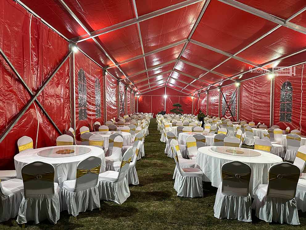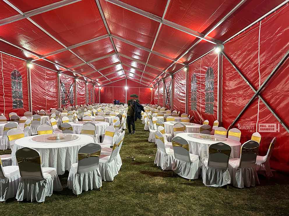 鄭州篷房出租可以承辦宴會聚餐嗎?年終歲末,很多企業都會舉行聚會來慶祝一年的圓滿結束。舉辦一場聚餐或者宴會基本成為了慶祝佳節的一種重要方式。找到一處合適的空間來聚餐不是件容易的事情。這個時候,華熠公司推薦您直接搭建一座篷房來解決這個局面就可以了。