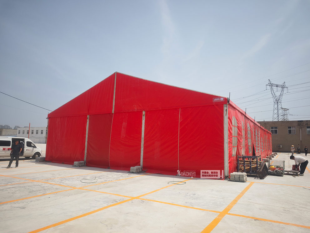 婚慶篷房是夏季婚禮市場的熱門之選。以紅色篷房為例,其鮮艷色彩契合傳統婚慶氛圍,鋁合金框架搭配雙層PVC篷布。內部可靈活配置水晶吊燈、紗幔、地毯等裝飾,結合空調系統,打造舒適浪漫的婚禮空間。鄭州華熠公司曾為多場戶外婚禮提供此類篷房,滿足新人對時效與美學的雙重需求。